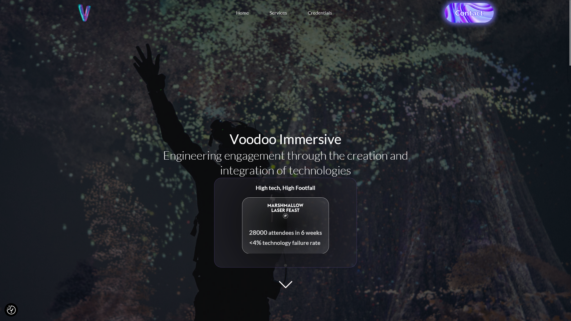 A modern, user-friendly website for Voodoo Immersive, featuring synchronized carousels and dynamic animations to reflect the futuristic nature of the AV/XR/VR industry.